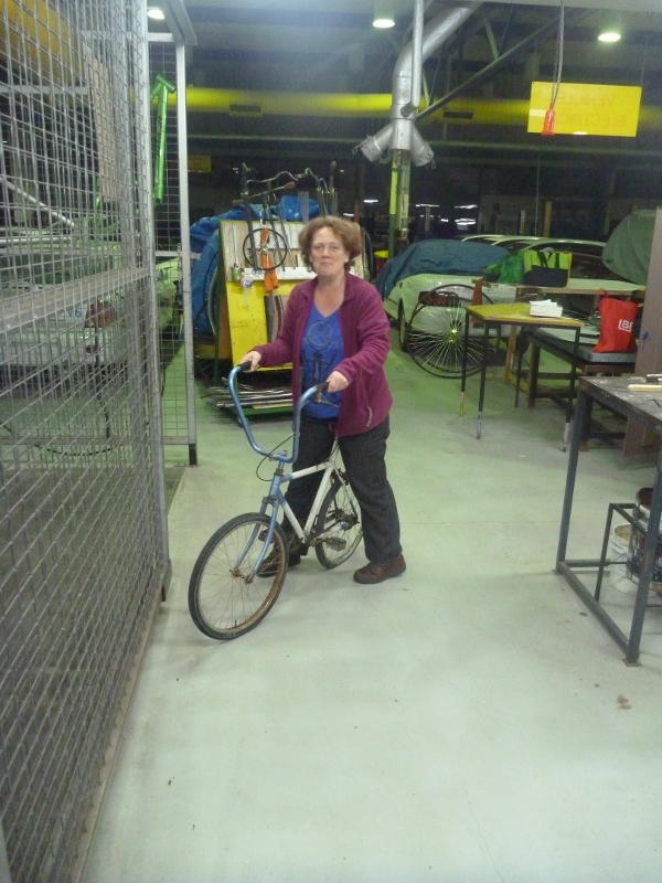 So there you have it a technically ridable p-far. Now you might be wondering how I got it home? I tried to fit it in the back but the hole was too small for the wheel as I previously alluded to that might be the case. My elegant solution....